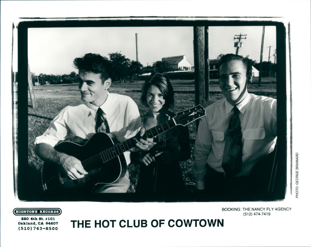The Hot Club of Cowtown was formed in the second half of the 1990s. Whit Smith played guitar and sang, Elana Fremerman/James played the fiddle (and later joined on vocals, too), and T.C. Cyran played the double bass. Elana and Whit moved to San Diego around 1997, and it was there that Dave Stuckey met them through Sean Mencher (High Noon). “We got together, hit it off, and, with Shorty and Lance Ray, played the ’97 Greaseball Weekend in San Francisco, where we also backed the Collins Kids. Great fun. However, Whit and Elana were interested in continuing full-time with the Hot Club of Cowtown, so they moved on to Austin…” With Billy Horton (of the Horton Brothers, for whom Stuckey wrote Whole Lotta Nothin’ and I Guess I’m Just In Love) on double bass, the trio recorded their first album for Hightone in 1998.